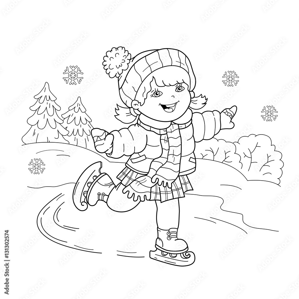 Coloring Page Outline Of Cartoon Girl Skating Winter Sports Coloring Book For Kids Stock Vector Adobe Stock